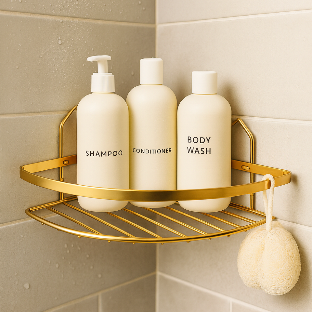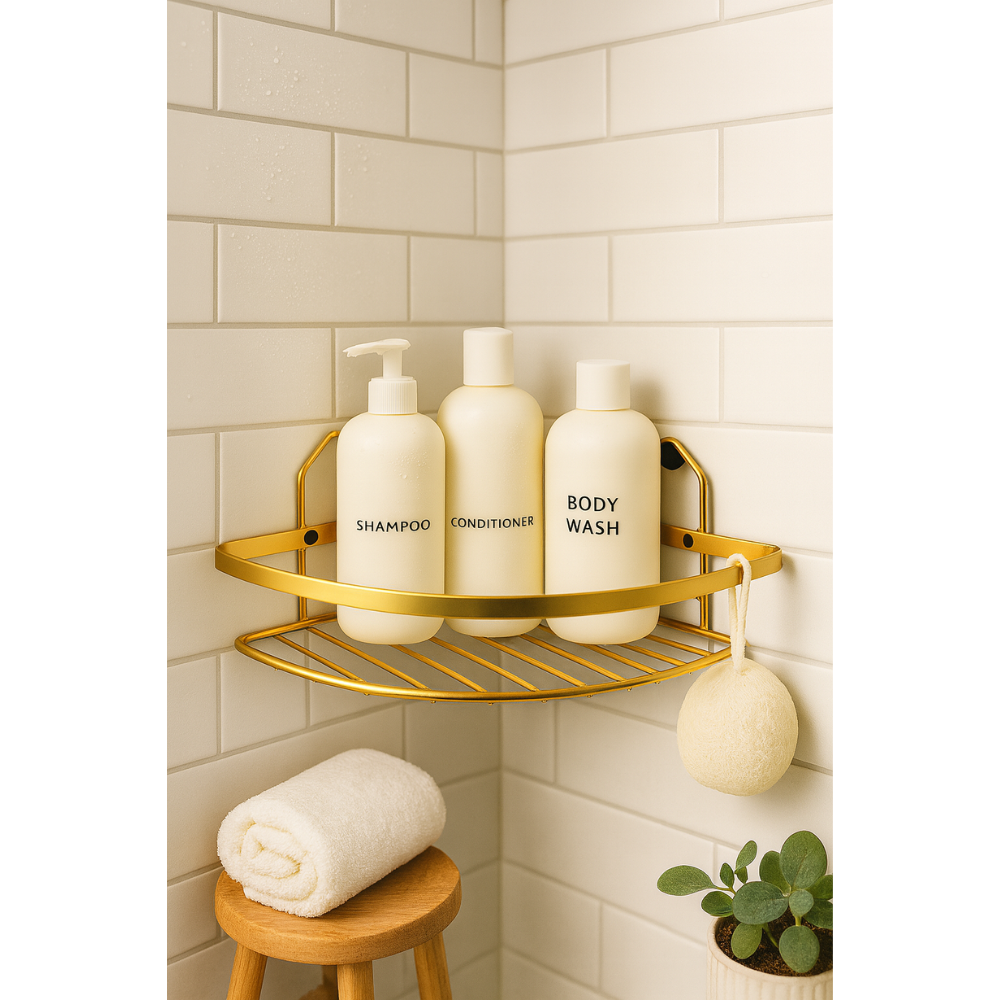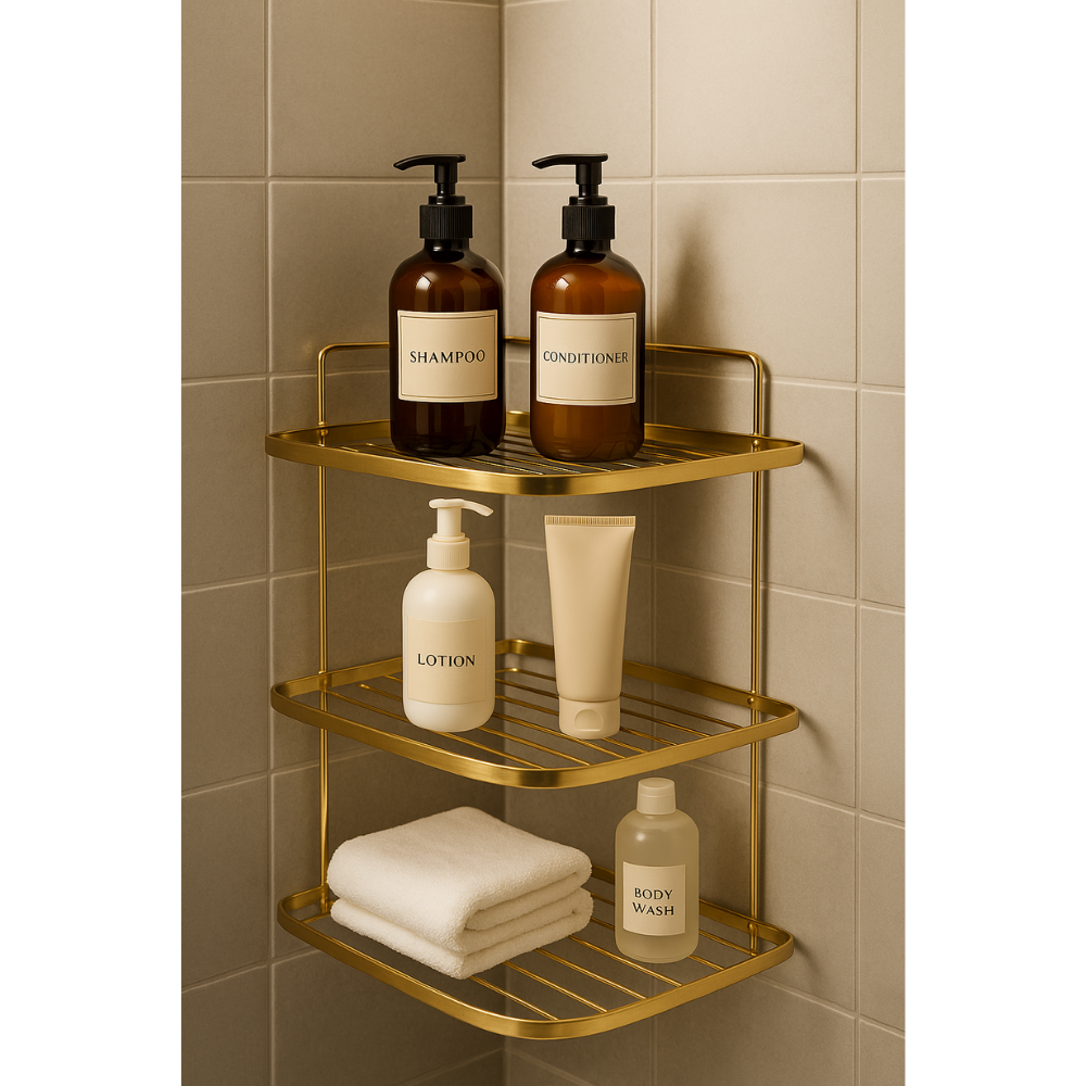 رف الحمام الزاوي المصنوع من الفولاذ المقاوم للصدأ يُضفي مساحة تخزين ذكية وموفرة للمساحة، بلمسة نهائية ذهبية أنيقة. هيكل مقاوم للصدأ وشرائح مفتوحة تُساعد على تصريف المياه والحفاظ على جفاف الزجاجات. اختر من طبقة واحدة أو طبقتين أو ثلاث طبقات لتنظيم الشامبو والصابون والإكسسوارات. تصميم مُثبّت على الحائط، يُثبّت بإحكام باستخدام البراغي والمثبتات المرفقة.