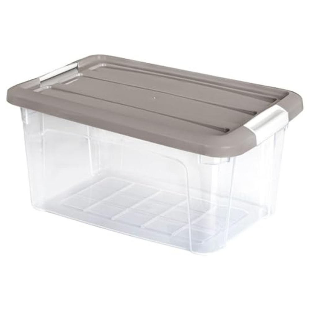 ما هو المشمول صندوق تخزين بلاستيكي شفاف مع غطاء مشبك بلون بيج (الحجم المحدد)
