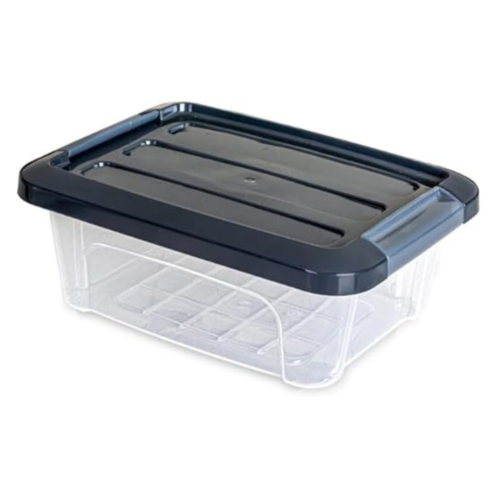 ما هو المشمول صندوق تخزين بلاستيكي شفاف مع غطاء بمشبك رمادي داكن (الحجم المحدد)