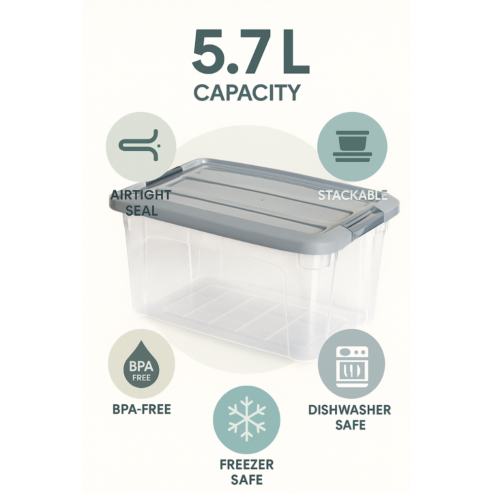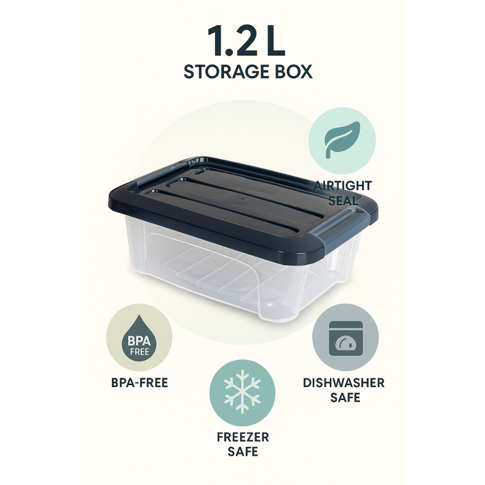 وصف المنتج يحافظ صندوق التخزين البلاستيكي الشفاف على نضارة الطعام بفضل غطاء محكم الإغلاق وهيكل شفاف لسهولة الرؤية. يمكن استخدامه في المجمدات العميقة وغسالة الأطباق، وهو مثالي لبقايا الطعام والأطعمة الجافة وتحضير الوجبات. يتوفر بحجمين عمليين (1.2 لتر و5.7 لتر) يمكن تكديسهما بسهولة في الثلاجات والخزائن المصرية.