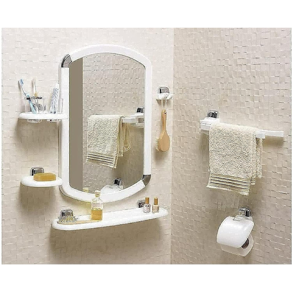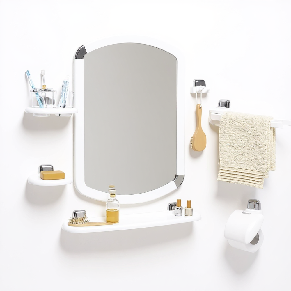 طقم مرآة حمام مع ملحقاته من 7 قطع - أبيض | بريمانوفا