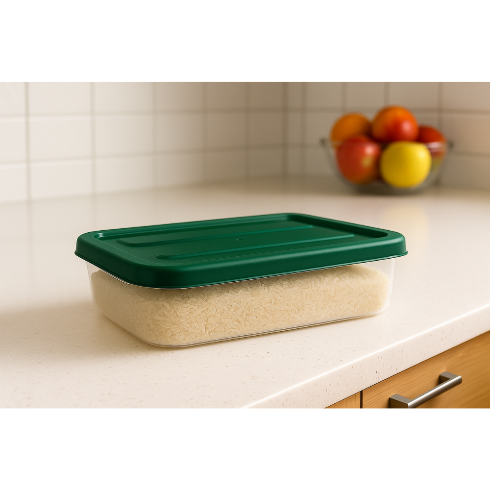 وصف المنتج نظّم مطبخك أو مُجمّدك أو مخزنك مع صندوق التخزين الملكي البلاستيكي الشفاف هذا، المزود بغطاء محكم الإغلاق. متوفر بحجمين عمليين (1.2 لتر و5.7 لتر)، يحافظ على نضارة الطعام، ويحميه من الانسكابات، ويناسب الخزائن أو رفوف الثلاجات في المنازل المصرية. يمكن استخدامه في غسالة الأطباق والفريزر لمزيد من الراحة.