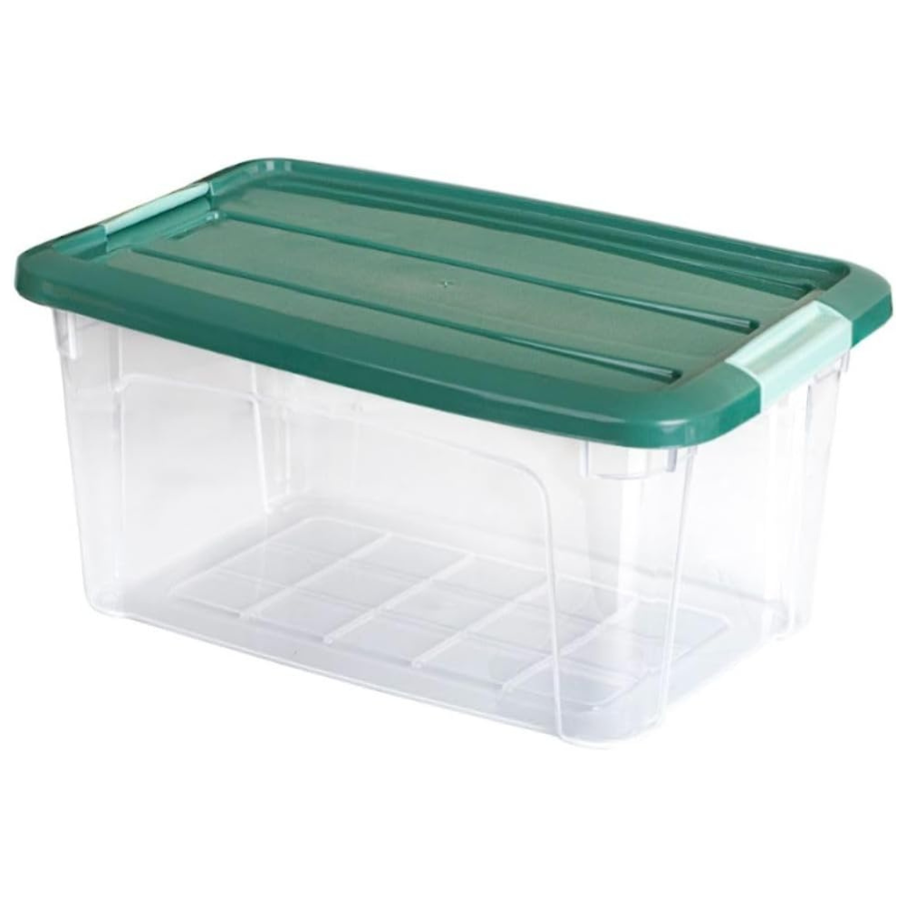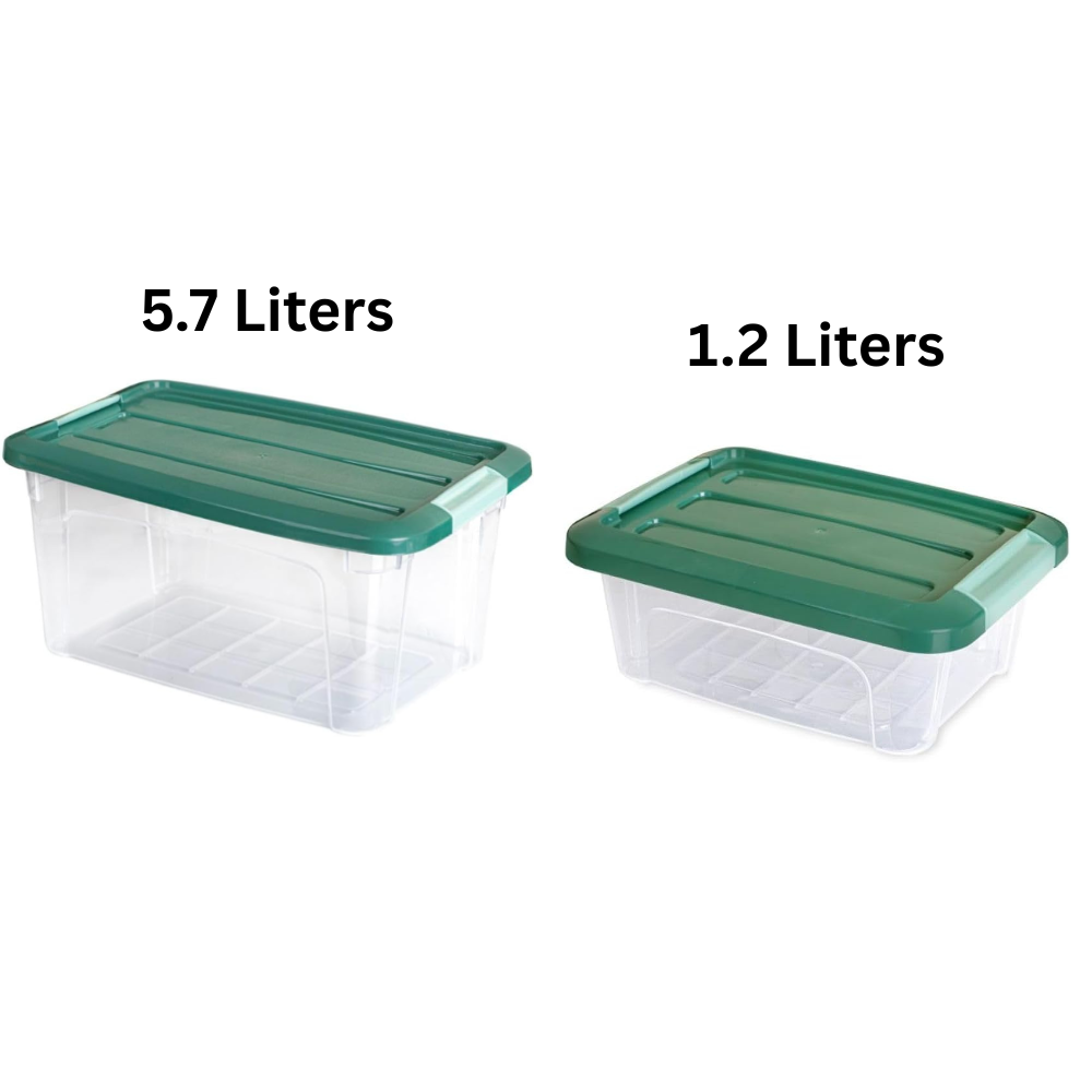ما هو المشمول صندوق تخزين بلاستيكي شفاف واحد (1) مزود بغطاء بمشبك (الحجم المحدد)