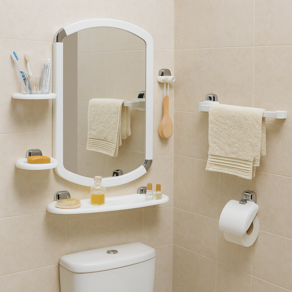 7-Piece Bathroom Mirror & Accessory Set – White | Primanova