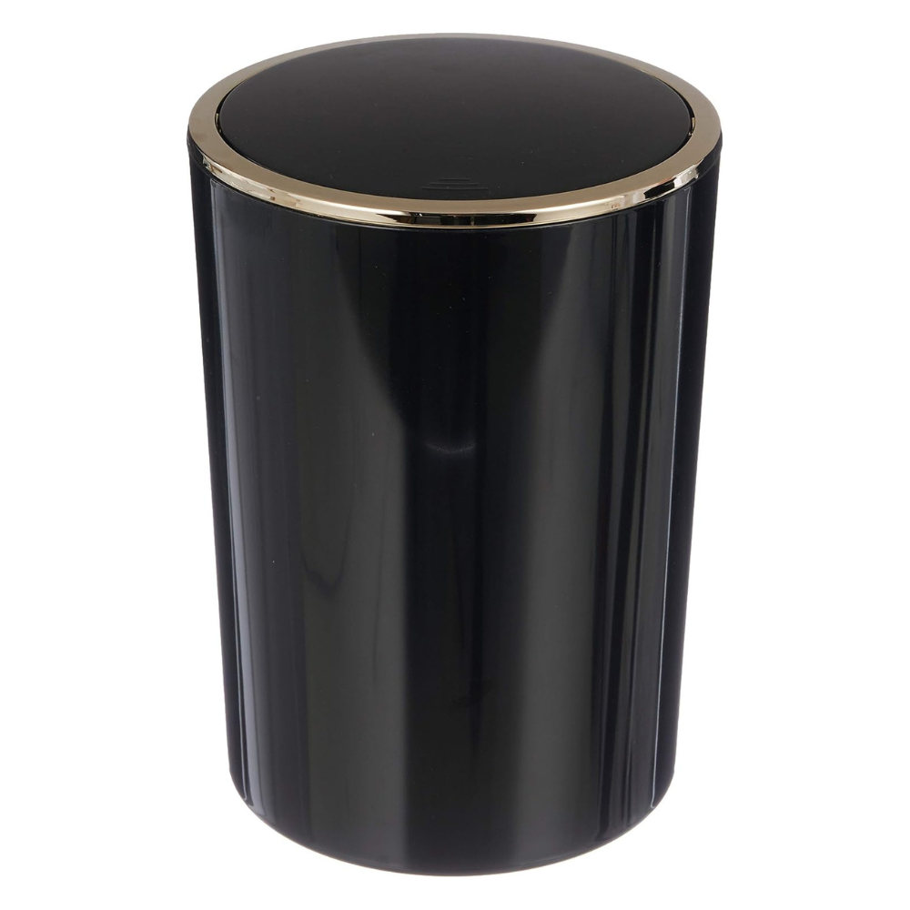 Acrylic Swing-Lid Trash Can – Gold Ring Rim Design, 6 Liter