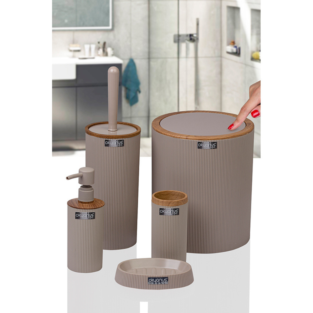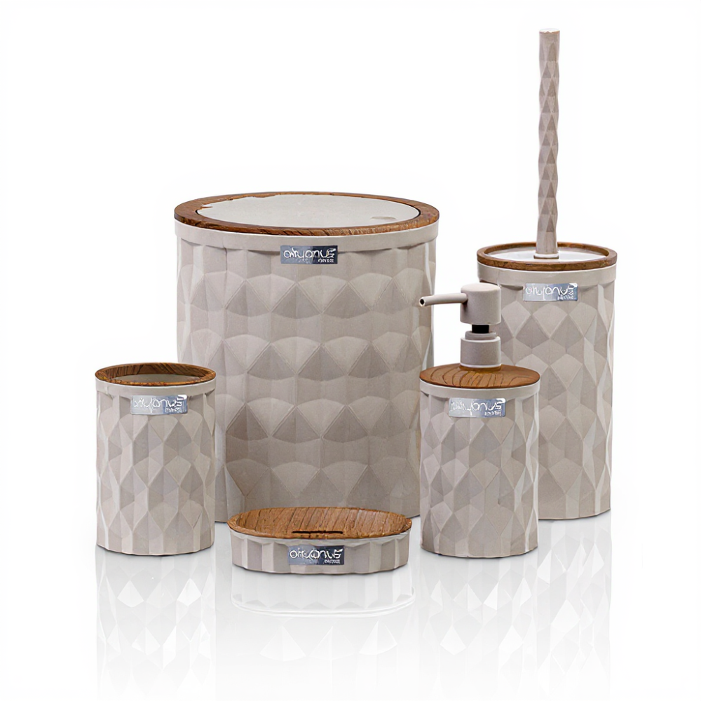 Okyanus 5-Piece Bathroom Accessories Set – Wood-Frame, Durable Plastic