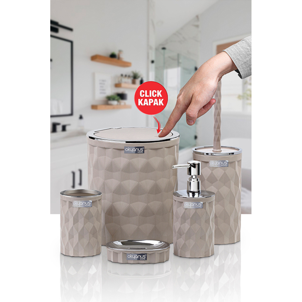 Okyanus 5-Piece Bathroom Accessories Set – Chrome Accents, Beige